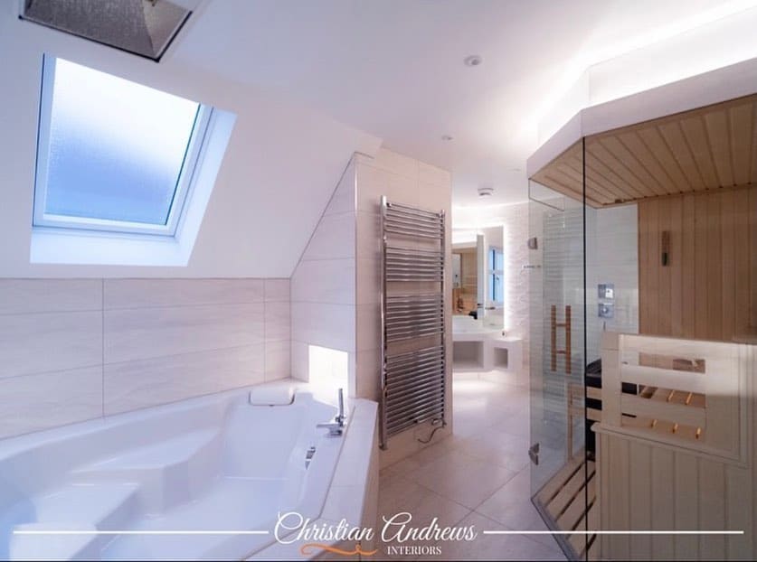 Este impresionante proyecto convirtió dos baños de una casa familiar en un spa grande y lujoso. Junto con un nuevo baño de alta gama, un espacio de ducha y una sauna con acabados de madera de álamo temblón, se instaló un sistema Warmup de bajo consumo para brindar un calor radiante y discreto. Con un diseño clásico y una atención precisa a los detalles, este spa trae el lujo de un resort de cinco estrellas al hogar para el bienestar diario.